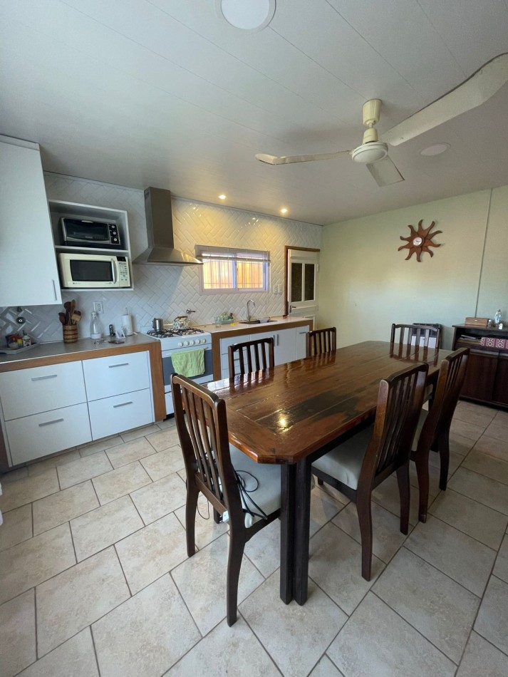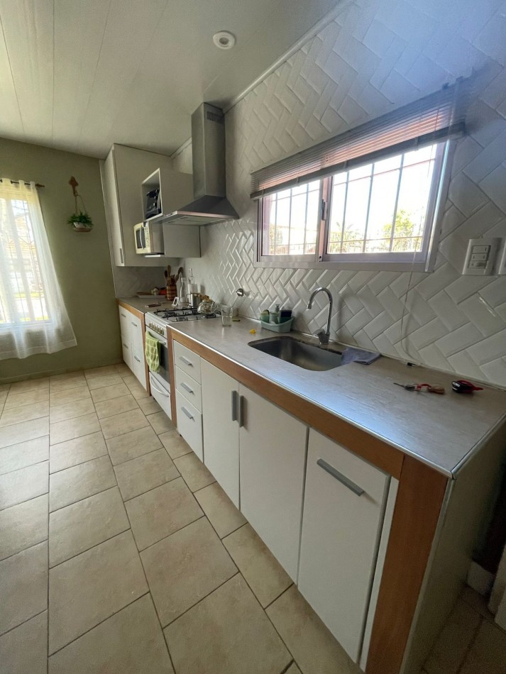 Entrada de auto descubierta para un auto con portón automático más garage para dos autos con cocina. Patio.