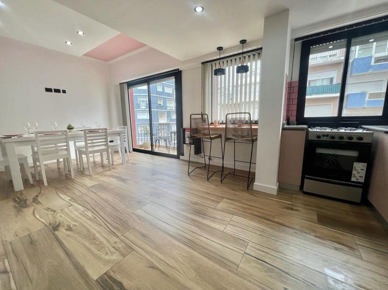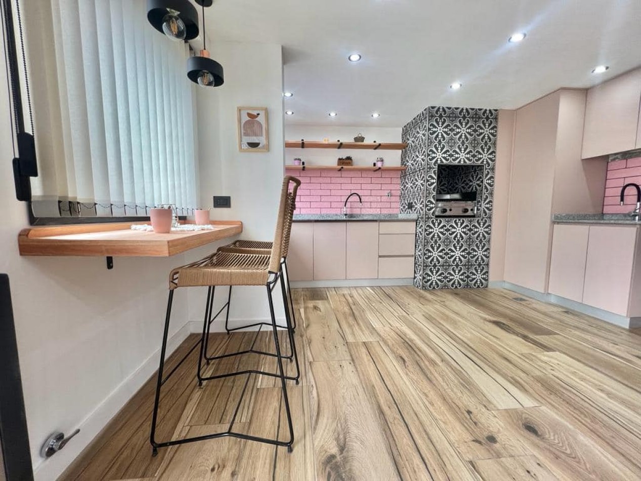 Cocina comedor con balcón saliente. Cocina con parrilla a gas.