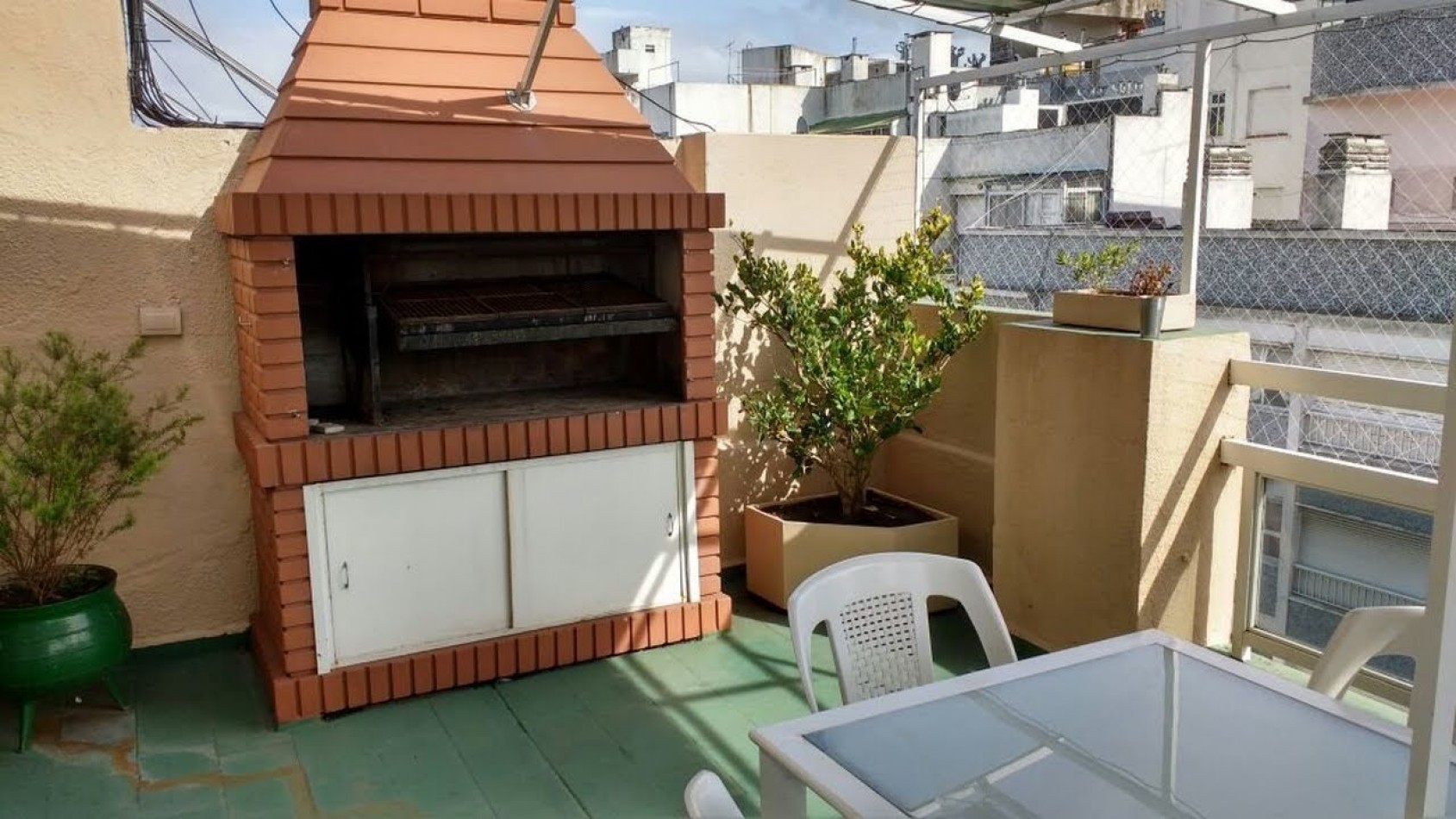 Posee un balcón terraza con sector de quincho semicubierto con parrilla a leños y sector descubierto. Red de seguridad en todo el perímetro.